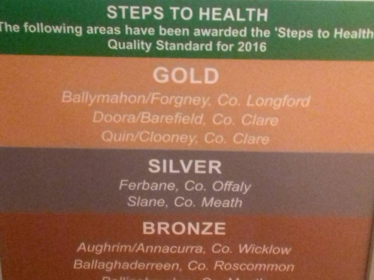 Ballymahon Forgney were also awarded the Steps to Health 2016 Gold quality standard, one of only three areas across the country to be honoured in this way.