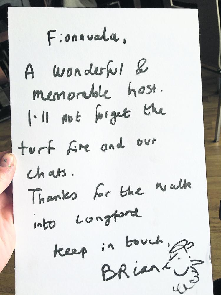 His host in Longford was Fionnuala Farrell, who heard about his travels via the Longford Leader last week.