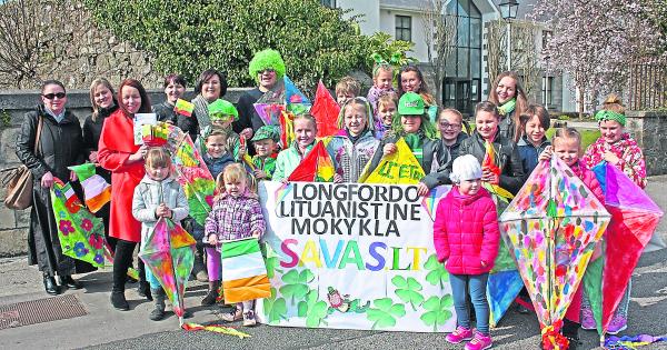 Students from the Lithuanian school in Longford with large handmade kites. The kite is the symbol for the school, representing 'childhood, friendship, happiness, peace, joy and dreams'.