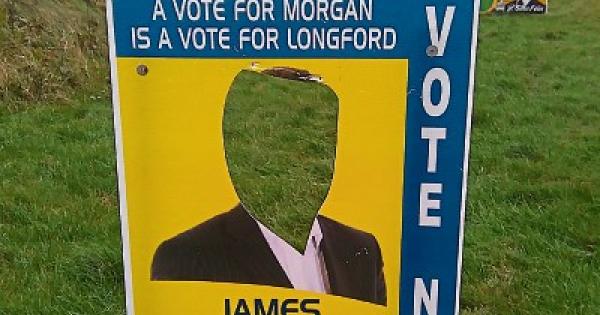 In recent days, a number of political placards in Longford town were “defaced” by the removal of the candidates’ heads.