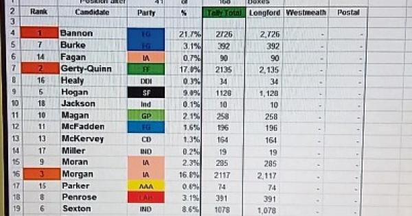 With 41 Longford boxes open at the count centre in Kenagh, James Bannon (FG) is leading the way, but could face a fight on his hands to retain his seat as a Fine Gael source claimed; “James needed to be at least 1,000 votes ahead before Westmeath boxes were opened and he's not”.