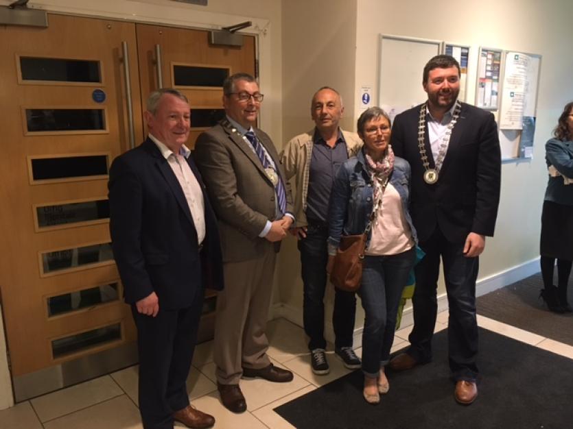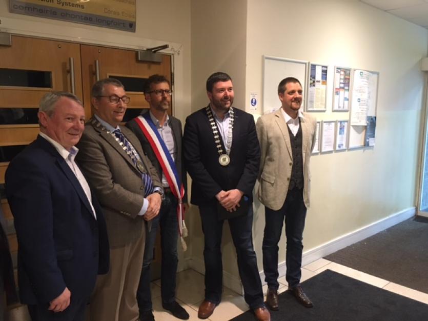 25 people from Longford’s twinning town, Noyal-Chatillon-Sur Seiche a French town situated in the heart of Brittany close to the historic city of Renne, arrived earlier this evening to a warm welcome at Arás an Chontae, despite the heavy downpours and cold temperatures!