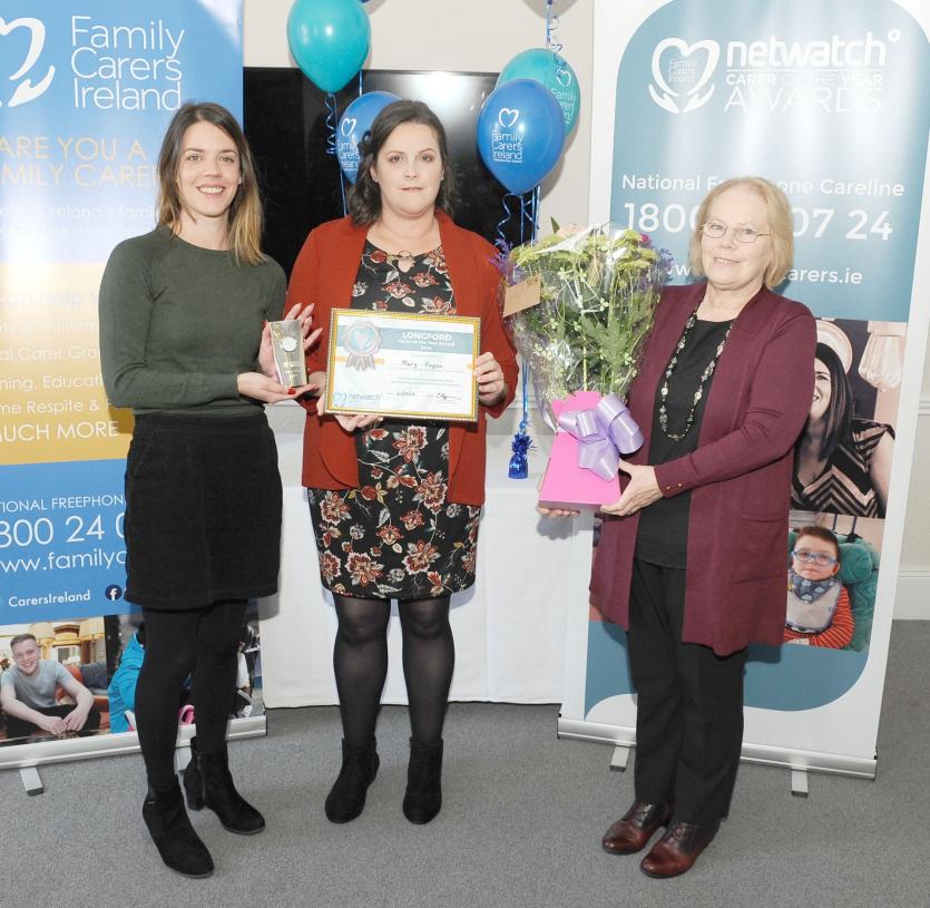 Mary Hagan, a mother of two from Bunlahy, has been honoured for her dedication to her children at the Family Carers Ireland (FCI) Longford Carer of the Year awards for 2019.