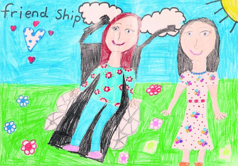 The Killoe entry came from 2nd class pupil Ellen Reilly and it featured an A4 coloured drawing of two friends. One is in a wheelchair while the other girl helps her and they smile happily; titled 'friendship'. Her teacher is Carmel Corr.