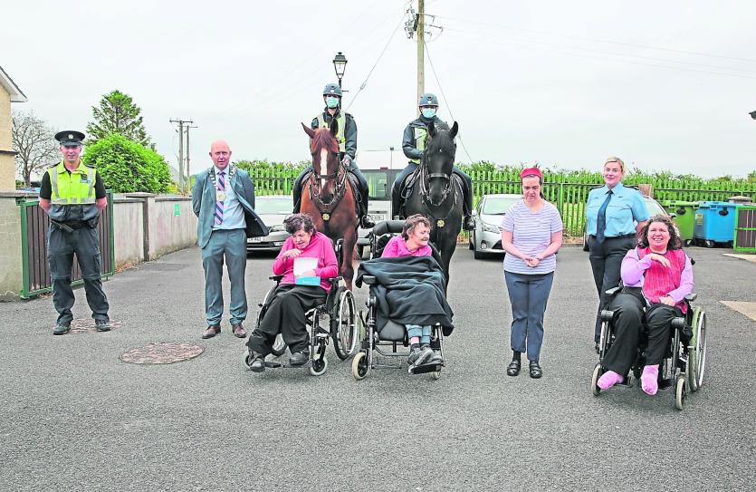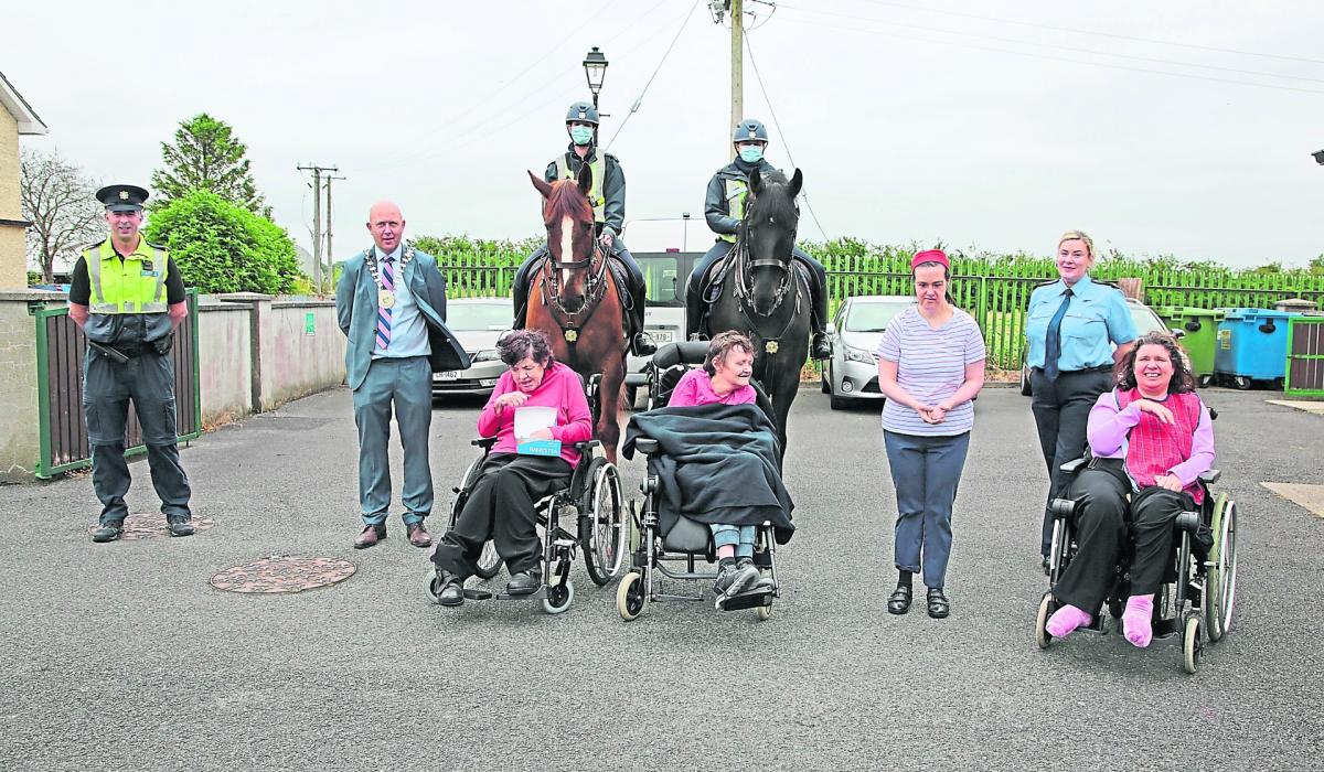 Their visit began at St Matthew's National School before the two horses made their way down Ballymahon’s Main Street and into Marian Terrace where they visited some very enthusiastic service-users at St Christopher’s.