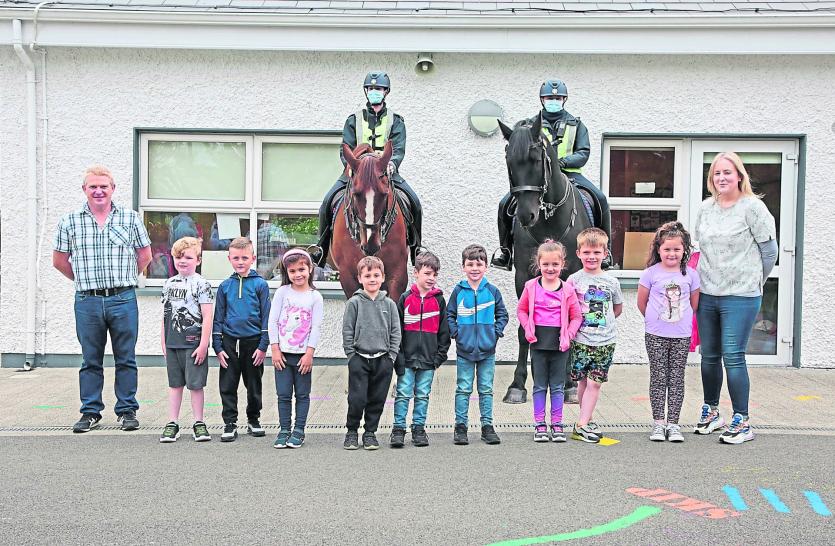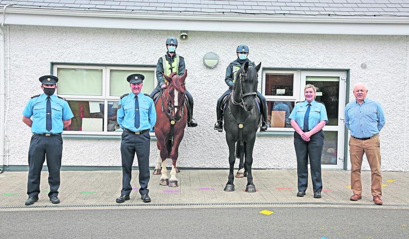 Batman and Laoch of the mounted unit, along with their Garda handlers, Gda Claire Anderson and Gda Lisa Halligan, paid a visit to a number of Ballymahon locations at the request of Community Garda Emma Kiernan.