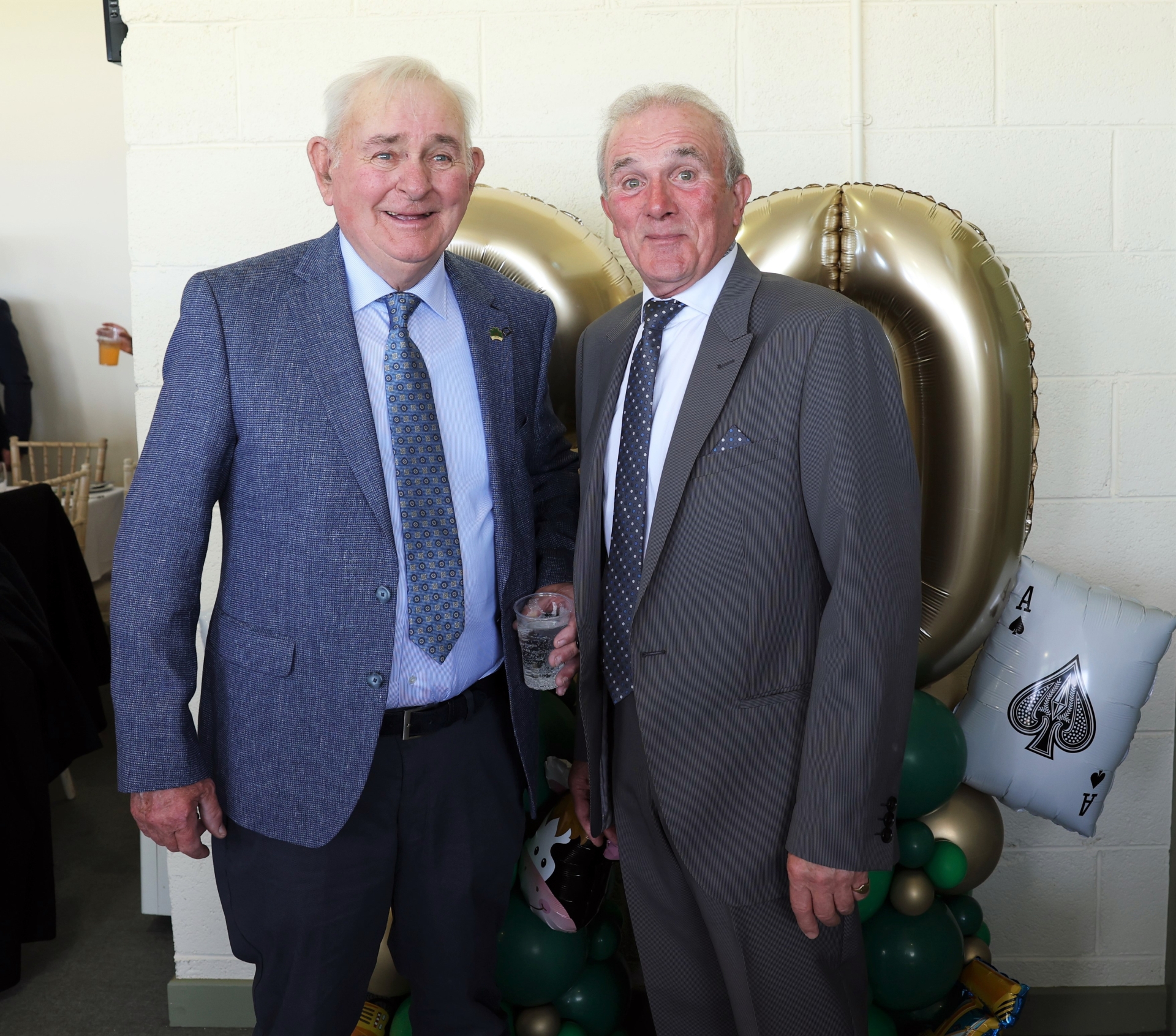 Caption: Barney Kenny's 80th Birthday celebrations at Kilbeggan Races. Barney with PJ Lynam, Kilbeggan Races. Photo: Syl Healy