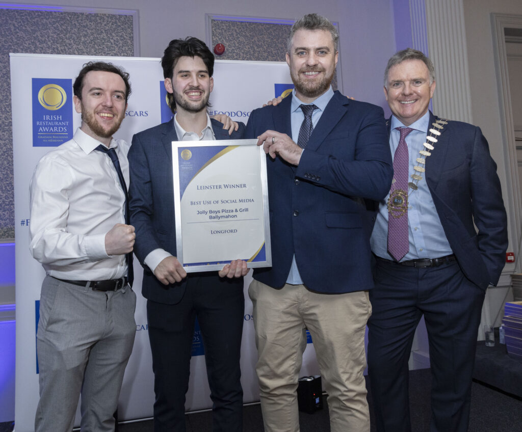 Caption: Jolly Boys Pizza & Grill, Ballymahon were named as winners of the Longford Best Use of Social Media Award at the Leinster Regional Final of the Irish Restaurant Awards in the Killashee Hotel, Kildare Picture: Paul Sherwood