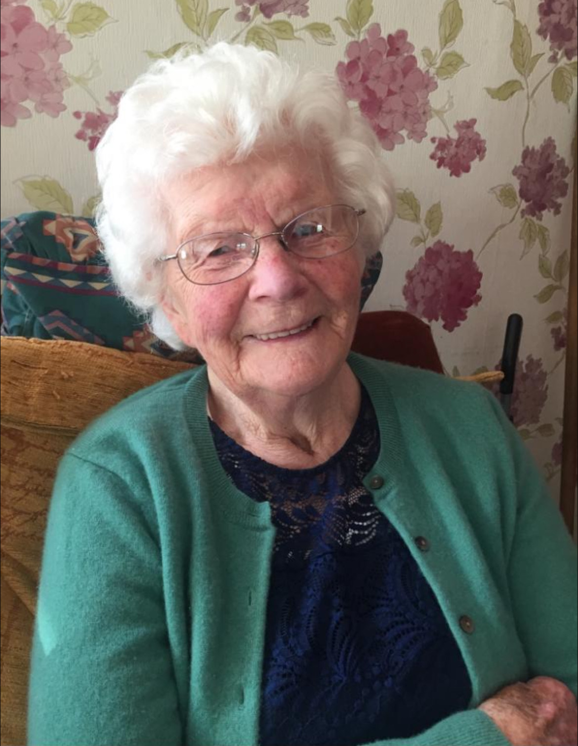 Predeceased by her parents William and Mary and grandson John. Sadly missed by her loving family husband Pat, daughter Ann (Scally), sons Tom, Brendan, Mel and Noel, grandchildren Nathan, Aaron, Evan, Sean, Claire, Eoin, Molly and Ethan, sister Lucy, son-in-law Christy, daughters-in-law Lydia, Teresa and Cecelia, nephews, nieces, relatives, neighbours and friends. Rest in Peace.