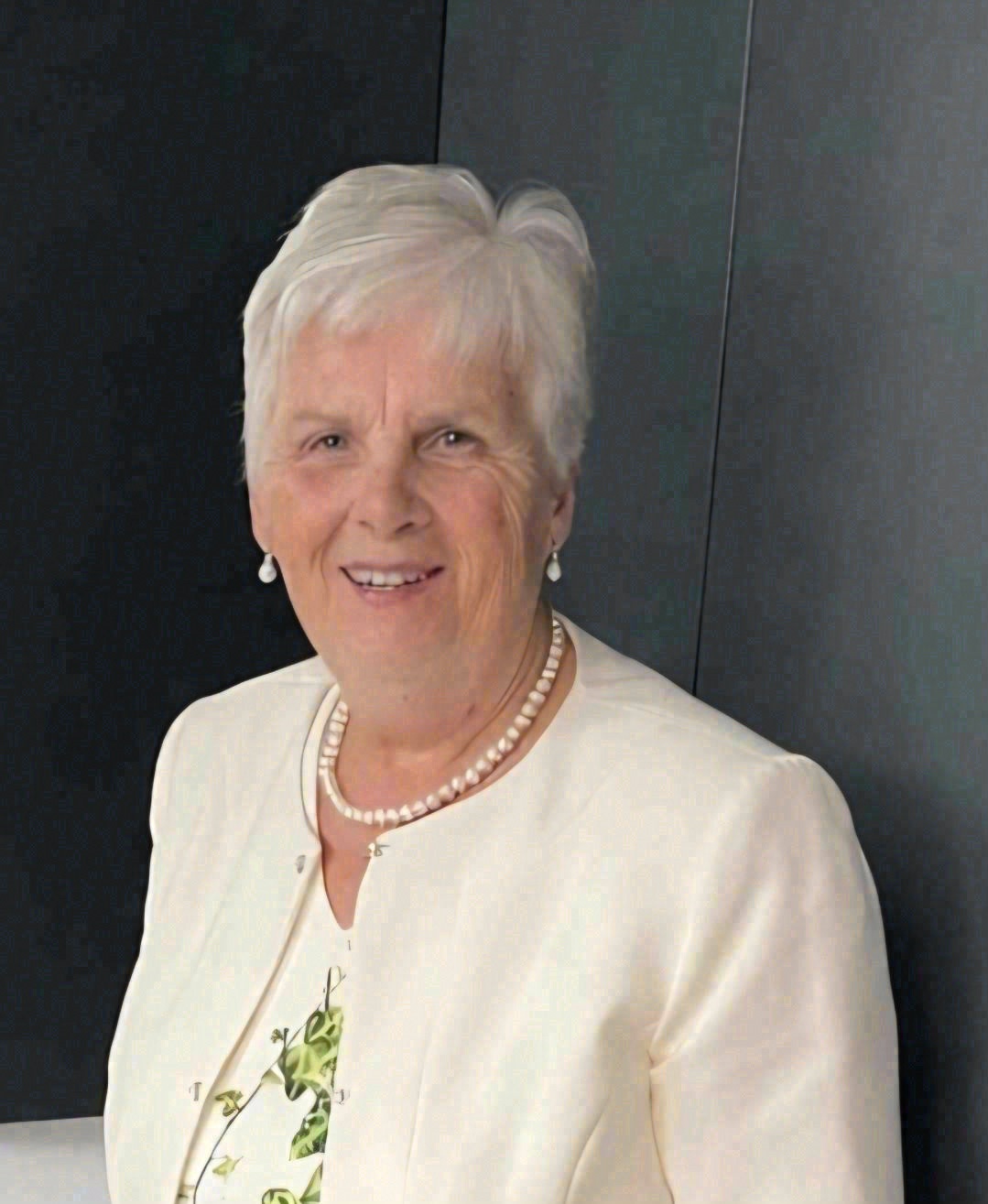 Deeply regretted by her loving husband Mel, her children Melanie, Zelda, Olwen, Genevieve, Michael and Zoë. Her sons-in-law Sean, Enda and Antonio, daughter-in-law Joanna, sister-in-law Marie. Her loving grandchildren Oisín, Caoimhe, David, Emma, Adam and Louis. Her relatives and close friends. May she Rest in Peace.