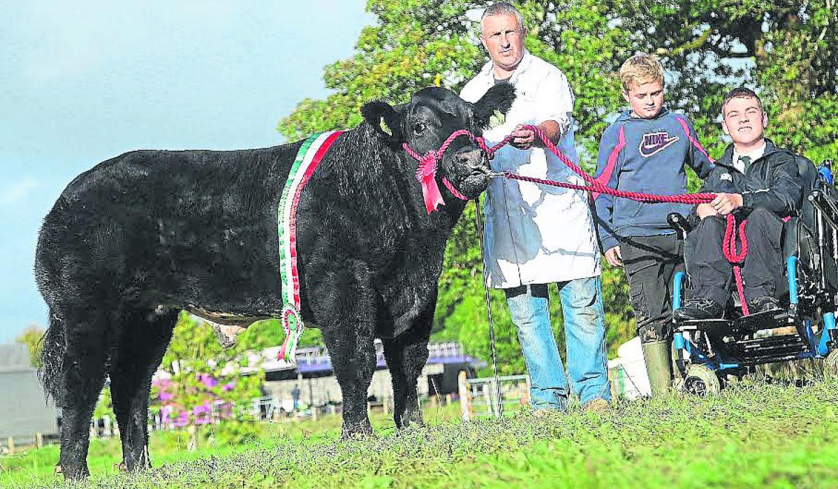 James, Jamie & Jason Teague, Ballymahon with their All- Ireland Bullock Champion at Strokestown Show. The Teague's had a successful day as they also had the Reserve All-Ireland Beef Heifer Champion