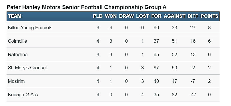 There is just one place to be filled in Group A with the winners of the Granard v Mostrim clash at Lynch Park on Sunday (2.30pm) making it through to the knockout stage, although a draw will suffice for St Mary’s due to their superior scores difference.
