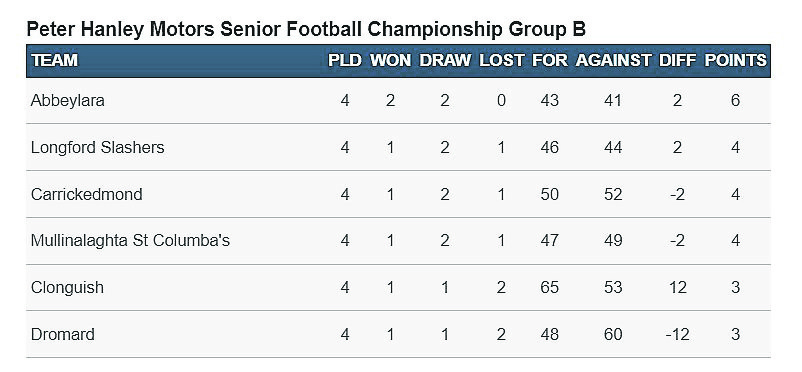 There are a number of permutations in the final round of fixtures in Group B with Dromard facing a must win match against Longford Slashers in the aftermath of their collapse against Clonguish last weekend.