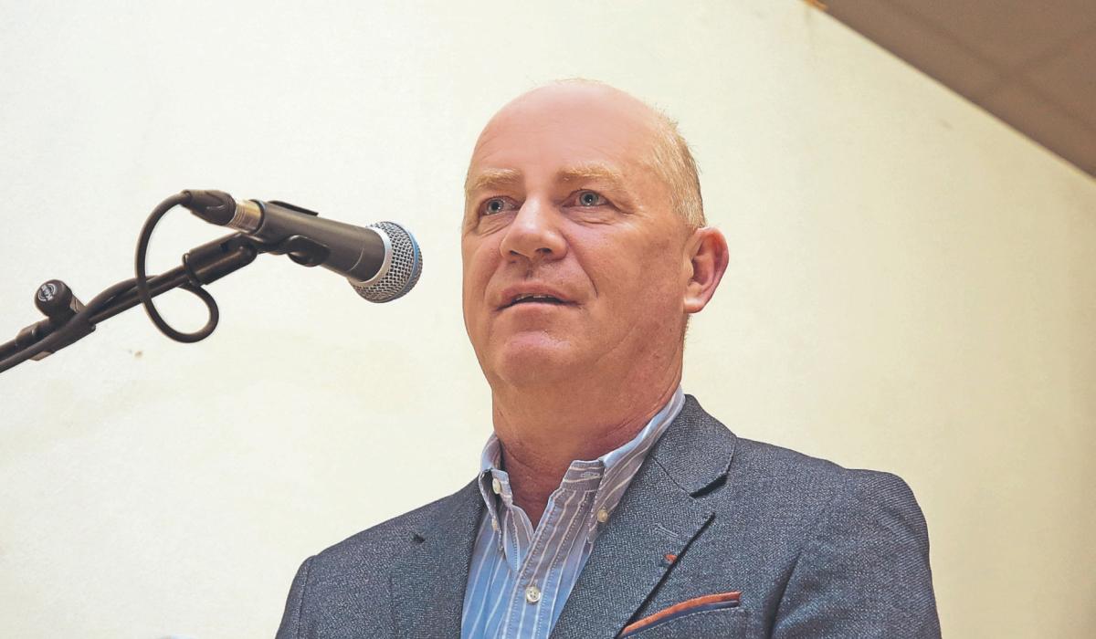 Longford GAA Chairperson Derek Fahy (Ballymore) speaking at the annual Convention in Fr Michael Campbell Parish Centre in Abbeylara on Thursday night last Photo: Shelley Corcoran