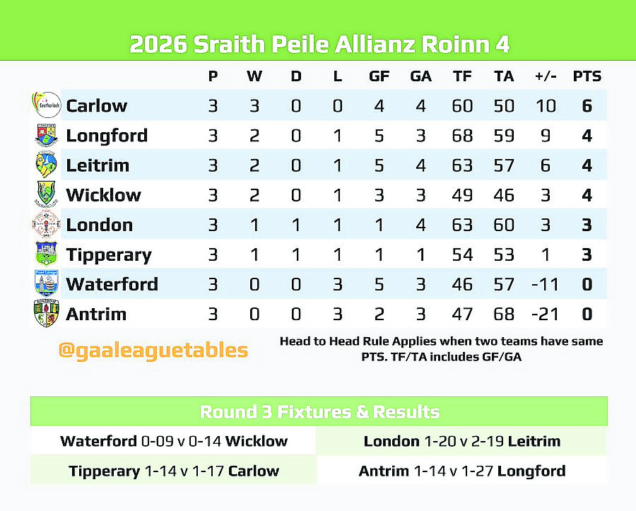 Consecutive home games now follow against Tipperary (on Sunday next) and table toppers Carlow before Longford head to Carrick-on-Shannon to meet neighbouring rivals Leitrim.