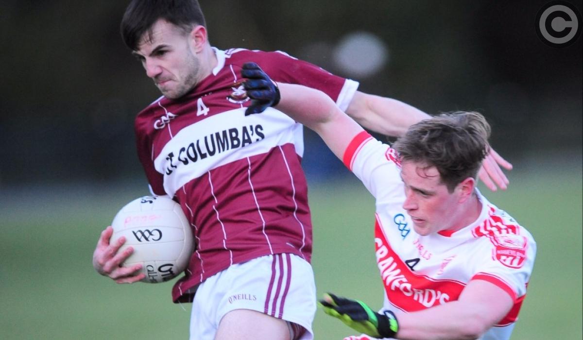 St Columba’s clicked into a higher gear to clock up another eight points - three from David McGivney (frees) along with a cracking couple of scores (play) from Aidan McElligott while Conor McElligott, James McGivney and Rian Brady also shot over the bar.