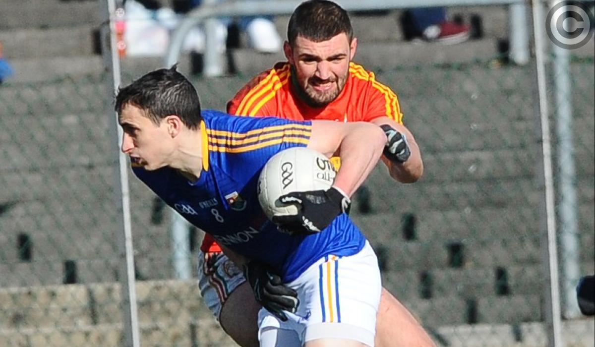 Darren Gallagher on the ball for Longford against Carlow. Action from the recent NFL Division 3 game at Netwatch Cullen Park. Photo: Declan Gilmore