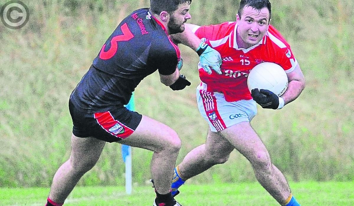 Kyle Fitzmaurice on the attack for Ballymahon in his bid to evade the challenge of Cashel defender Mel Farrell. Action from the Intermediate Championship first round game. Photo: Declan Gilmore