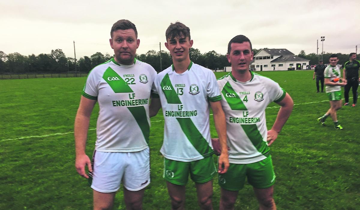 Pictured following their win over Kenagh in the IFC Group 1 clash on Sunday evening last are St Brigid's Killashee players Chris Dineen, Jack Magan and David Buckley, the Longford senior hurler