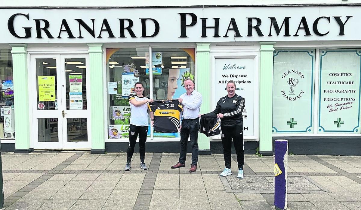Pictured is one of the club sponsors, Martin McDaid of McDaid's Pharmacy, Granard, presenting new jerseys & shorts to Ballymore ladies Caroline Kiernan and Mary Kiernan