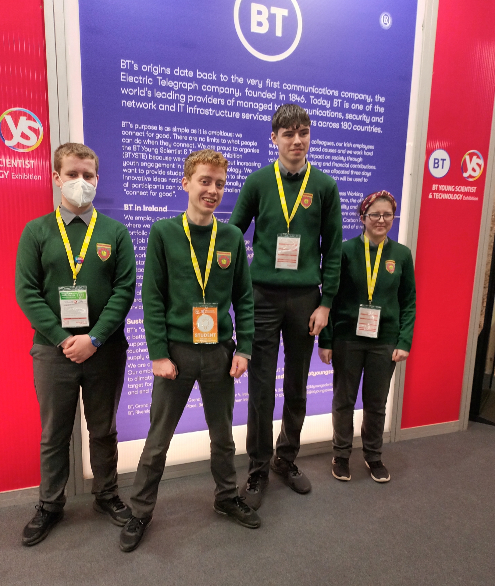 Caption: Ronan Lyons, Conor Lyons, Bryan Mullooly and Amy O’Donohue who represented Lanesboro Community College at the 59th BT Young Scientist & Technology Exhibition (BTYSTE)