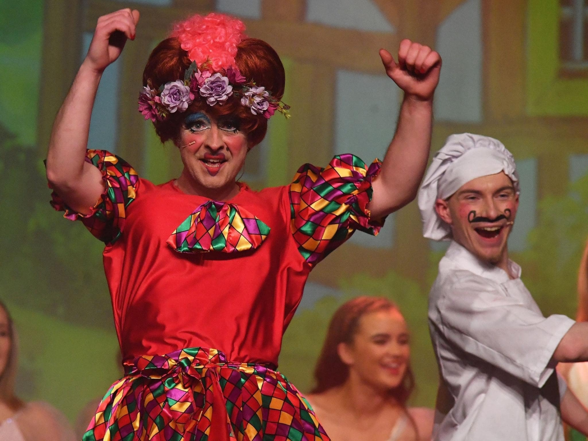 Caption: Gloria (Davy Flaherty) and Chef Sam (Iarlaith O'Rourke) entertained the audiences at Billy and The Beanstalk which ran over the Christmas / New Year period in St Mel's College Picture: Frank McGrath