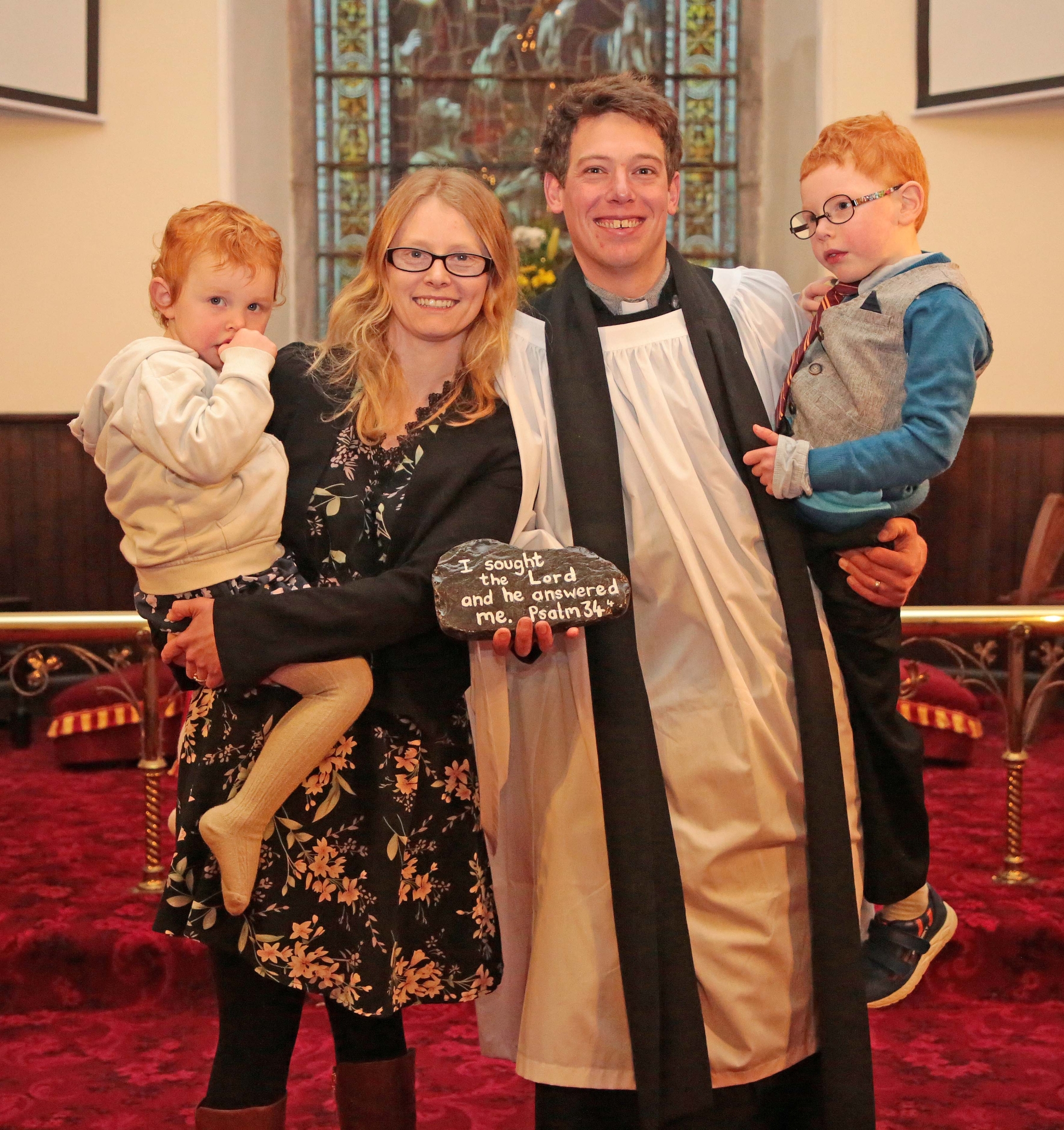 Caption: Rev Simon Scott, with his wife Tam, and their children Aviyah and Micaiah after he was Instituted as Rector of the Longford Group of Parishes on Sunday last during a service led by Bishop Ferran Glenfield who was assisted by Archdeacon Hazel Hicks Picture: Shelley Corcoran