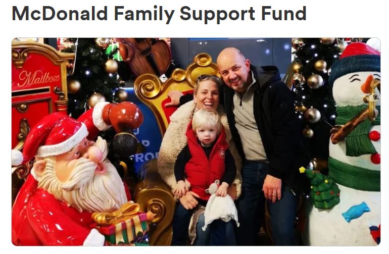 A gofundme appeal entitled McDonald Family Support Fund was set up at the end of last month in a bid to provide financial respite to Fintan, his wife Edel and the couple’s two year-old son Fintan.