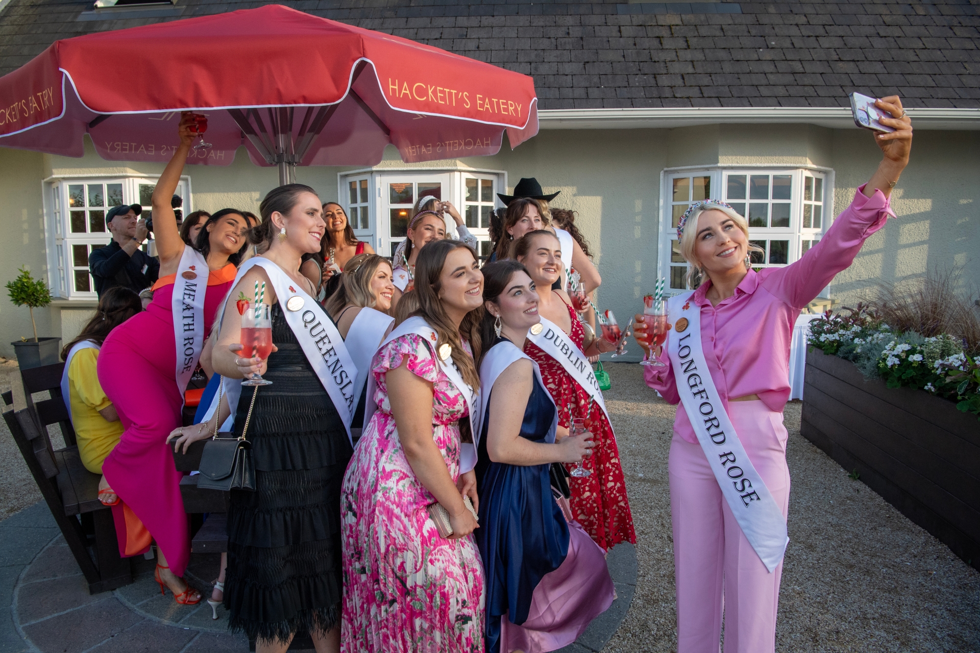 Caption: Longford Rose Grace Kemple takes a selfie with her fellow roses at the County Arms Hotel in Birr, Co. Offaly as part of the Rose Tour Picture: Domnick Walsh