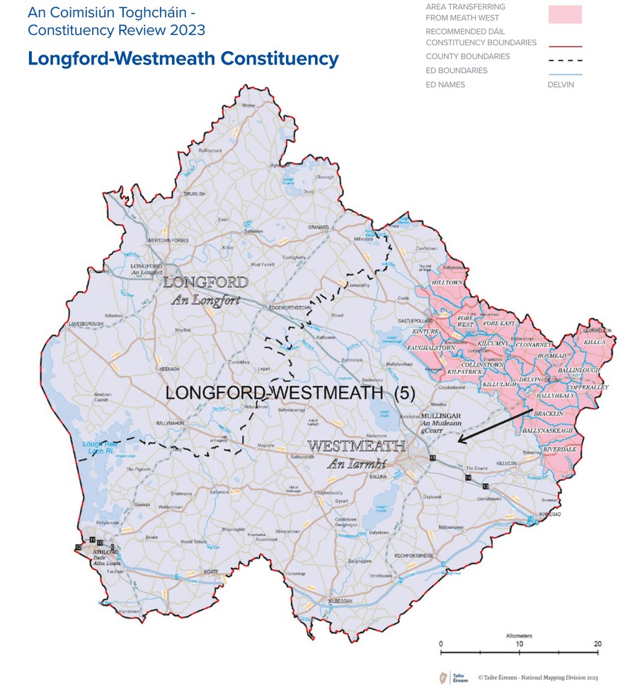 The proposals suggest that an additional 19 electoral divisions be moved into the Longford/Westmeath constituency from the Meath West constituency.
