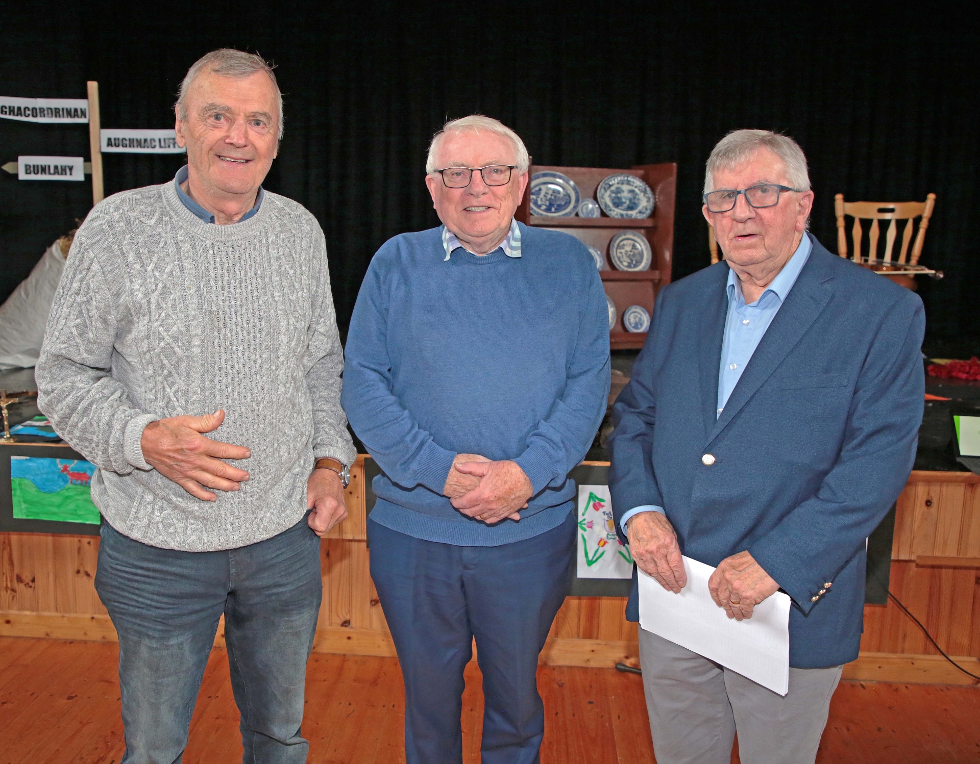 Caption: Gearoid Mulligan, Seamus McRory and Benny Reid at the Padraic Colum Gathering in Colmcille Community Centre