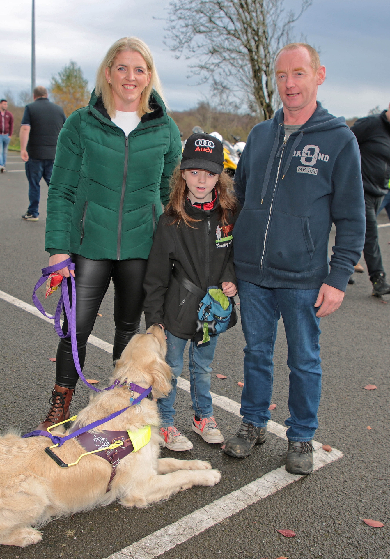 Caption: Teresa, Emily and Frank Kane with Obi at the Gemma McGee Memorial Bursary Fund All Vehicle Run on Sunday, October 29 Picture: Shelley Corcoran