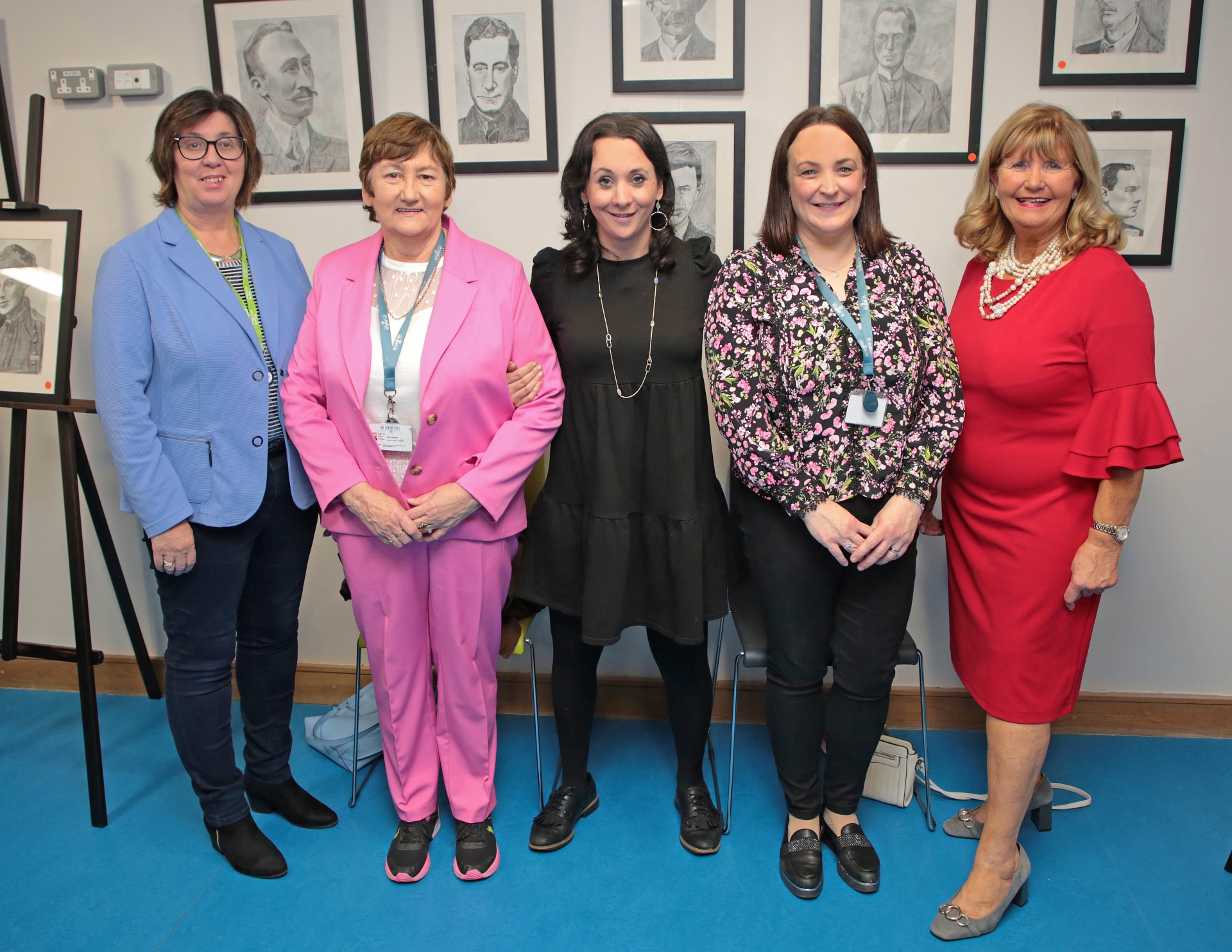 Caption: Paula Mulry, Helen Sheridan, Laura Doherty, Eimear Feeney and Mary Carlton Reynolds in Edgeworthstown Library on Tuesday, November 7 for the opening of Laura’s Art Exhibition. All proceeds will go to An Saol Foundation.
