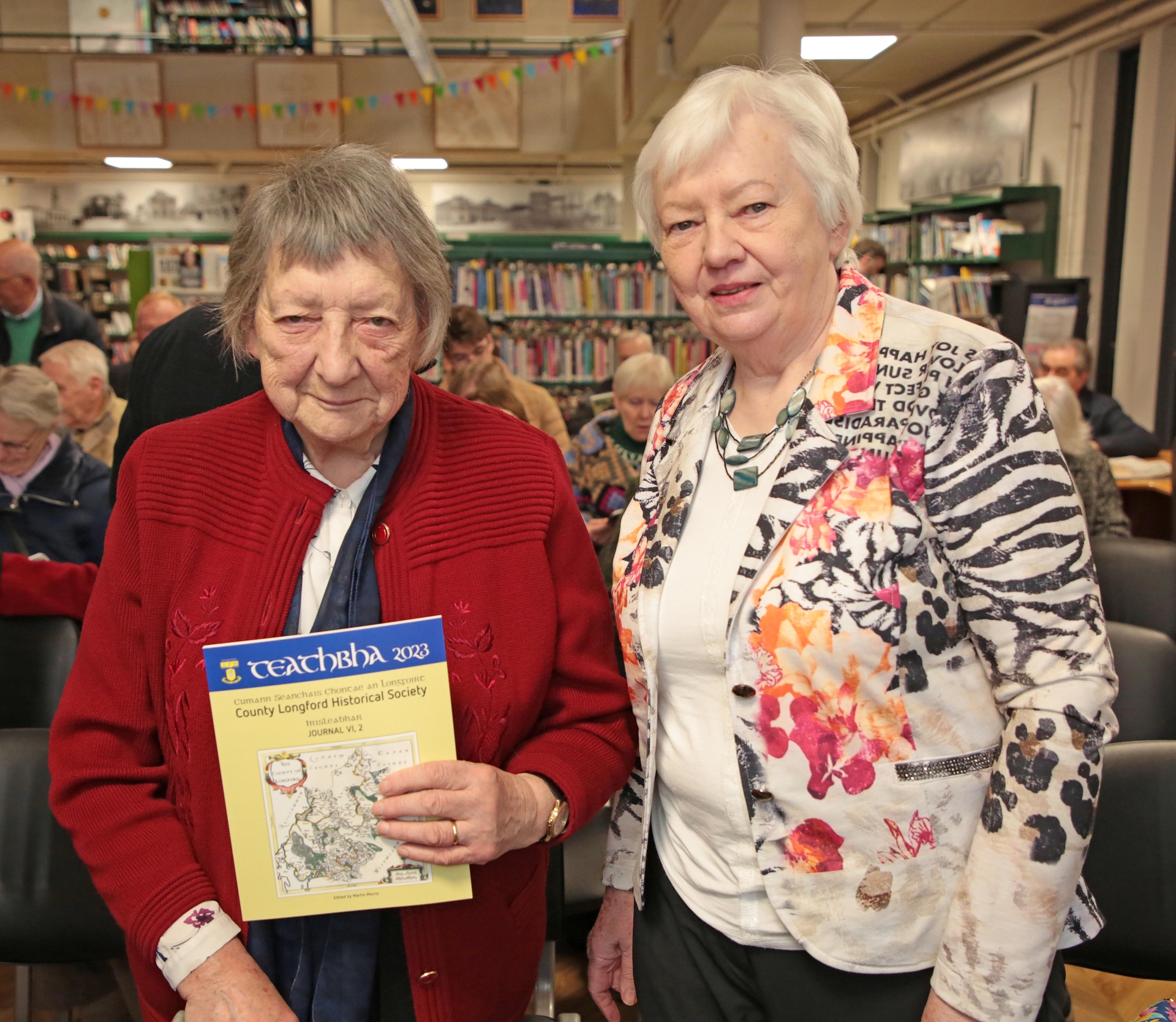 Caption: Helen Mahon and Josephine O'Donnell in Longford County Library for the launch of Teathbha
