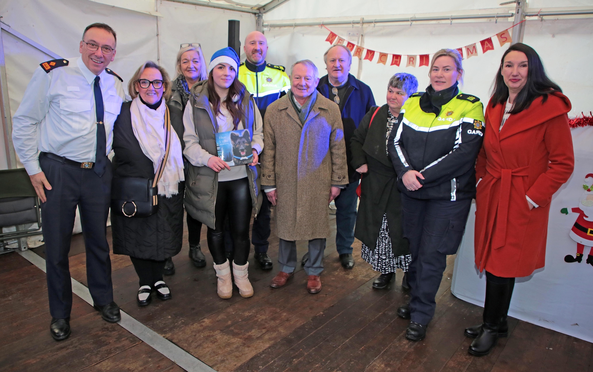 Caption: At Jolly Boys Christmas Market in Ballymahon for the launch of the 2023 Operation Blue Light Santa book, Operation Blue Light Heroes were Superintendent Seamus Boyle, Cllr Peggy Nolan, Cathy Birmingham (mother of the late Max Wenman), author Jessica Thompson, Garda Darragh McLoughlin, Cllr Seamus Butler, Dave and Olive Kelly (parents of the late Luke McCormack), Garda Emma Kiernan, Siobhan Cronogue (County Longford PPN). The late Max Wenman (RIP) and Luke McCormack (RIP) are among the honorary Gardaí from the Little Blue Heroes that feature in the book Picture: Shelley Corcoran