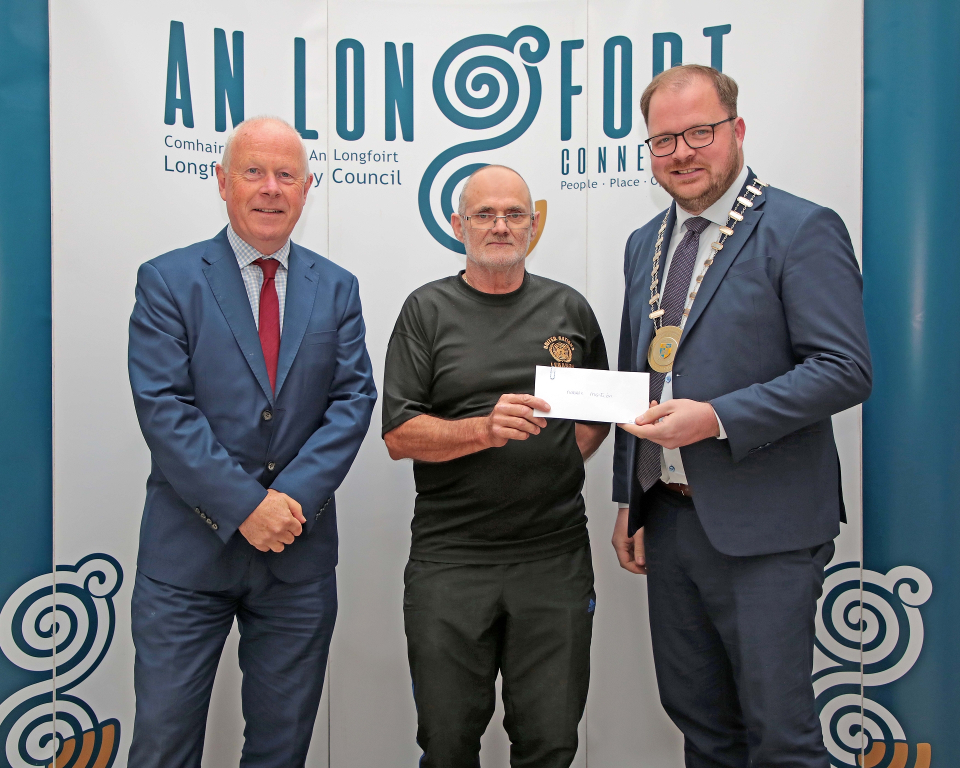 Caption: Cartron Road, Kenagh picked up a Notable Mention recognition at the Better Estate Awards 2023 and pictured are Longford County Council Chief Executive Paddy Mahon, Daniel Walshe and Longford County Council Cathaoirleach Colm Murray Picture: Shelley Corcoran