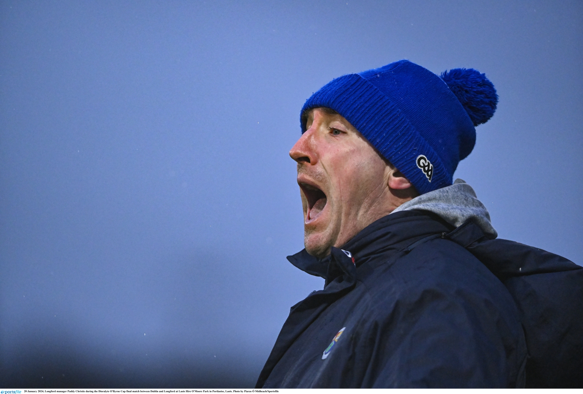 Caption: Longford manager Paddy Christie during the Dioralyte O'Byrne Cup final match between Dublin and Longford at Laois Hire O'Moore Park in Portlaoise, Laois. Photo by Piaras Ó Mídheach/Sportsfile