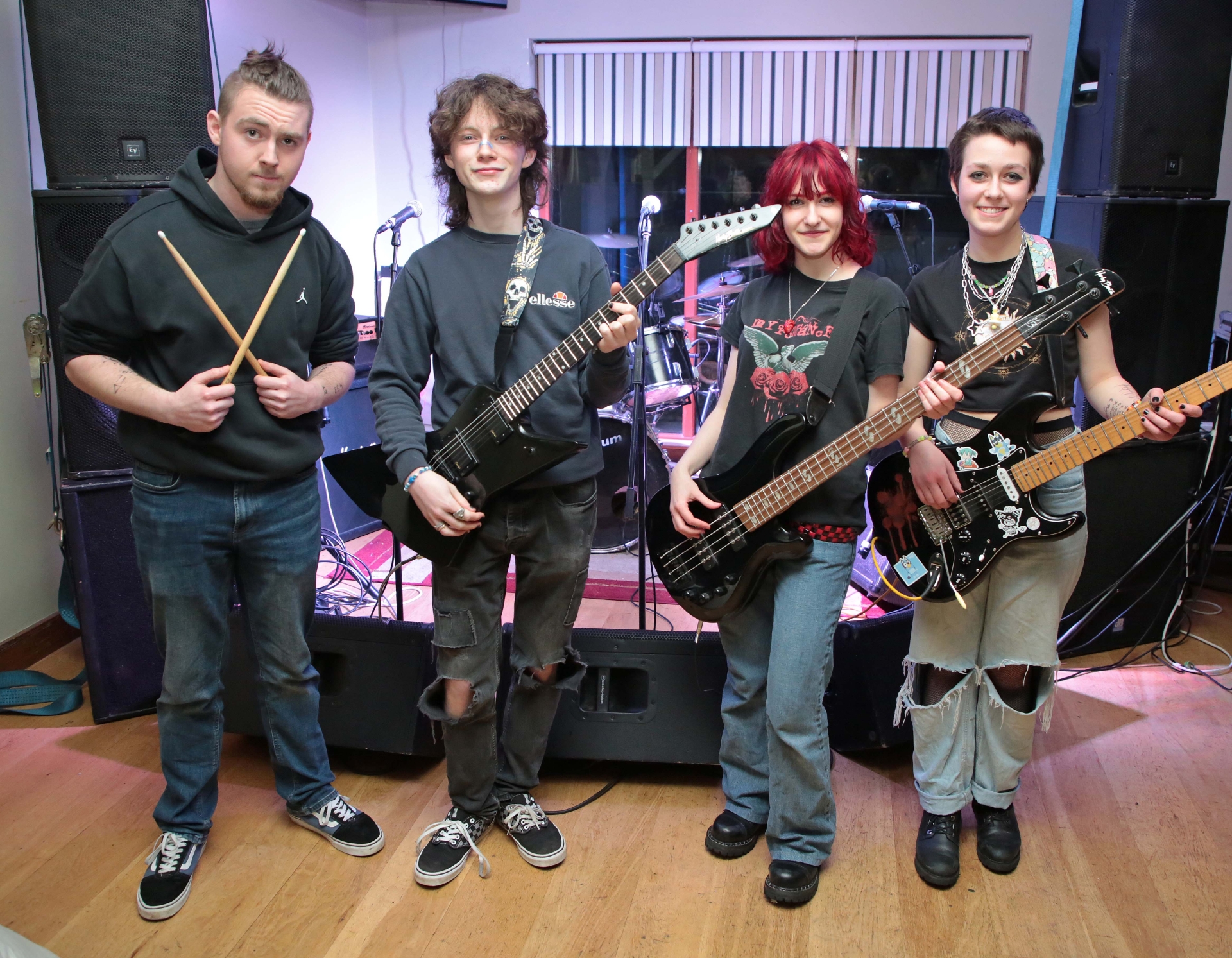 Caption: Pardon All Patrons: Connor Wright, Declan Murphy, Victoria Lapa and Skyler Kelleher were among the bands that performed at Longford's Gig for Gaza in the Sin Bin Event Centre, Longford rugby club last Saturday evening. Earlier that afternoon there was a peaceful solidarity gathering for Palestine in Market Square, Longford town