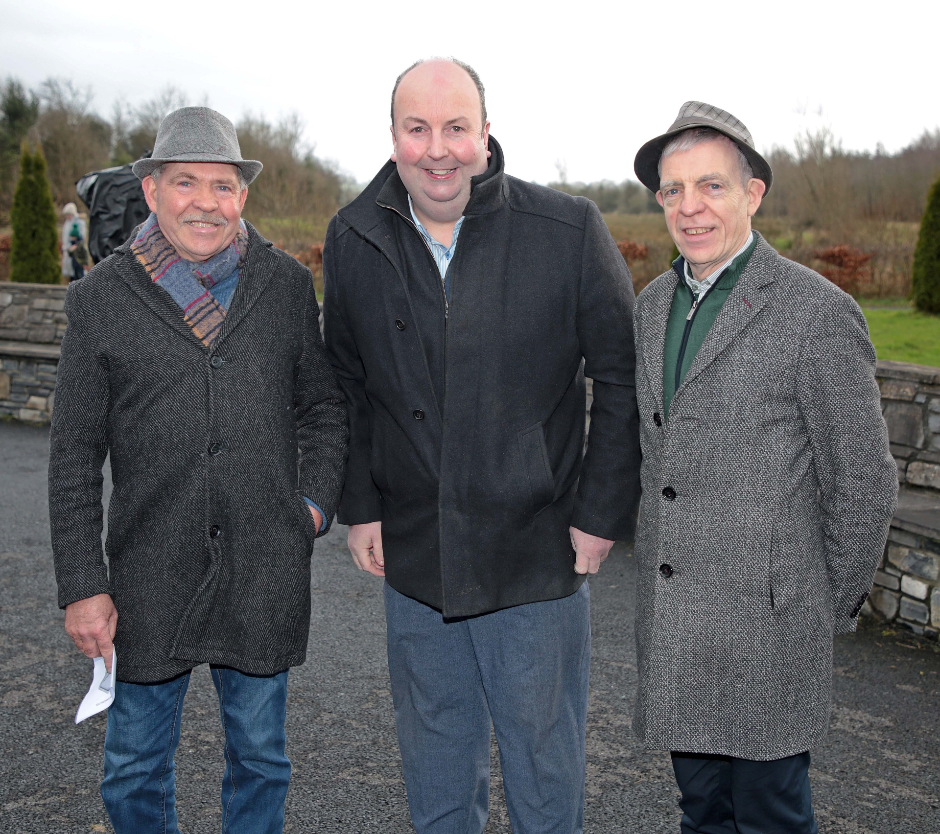 Caption: Aidan and Gerard Brady with Cllr Colin Dalton at the Clonfin Commemoration ceremony on Sunday