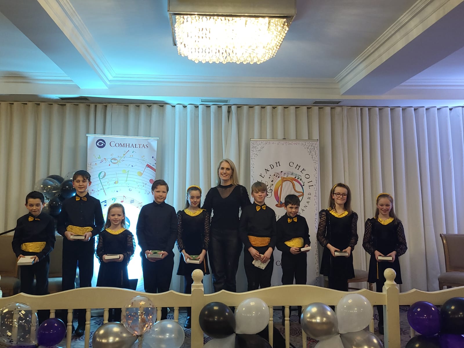 Caption: Oisin Reilly, Lorcan Flynn, Riona Drake, James McDonagh, Caoimhe Corbett, Sean Costello, James Denneny, Jennifer Drake and Kate Cadam with their tutor Carla Flynn at the John Dungan CCÉ branch presentation night in the Pikers Lodge, Gowna