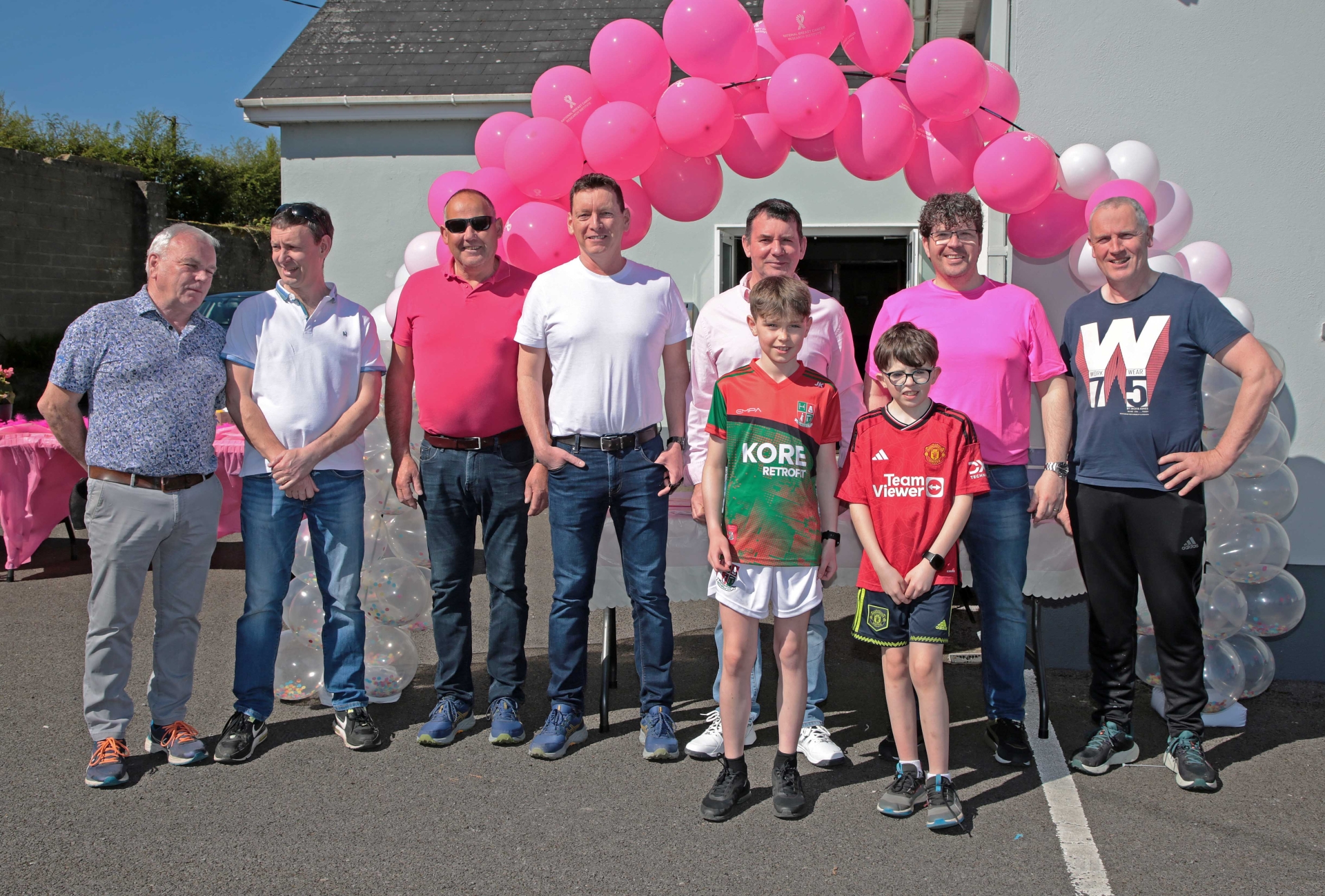 Caption: At Colmcille Community Centre for the Colmcille Goes Pink Walk to raise funds for the Breast Cancer Institute were Joe Mulligan, Stephen Carrig, David Jones, Barry Conarty, Raymond Farley, Kieron Collins, Matt and Martin McGauran with Donnacha Collins