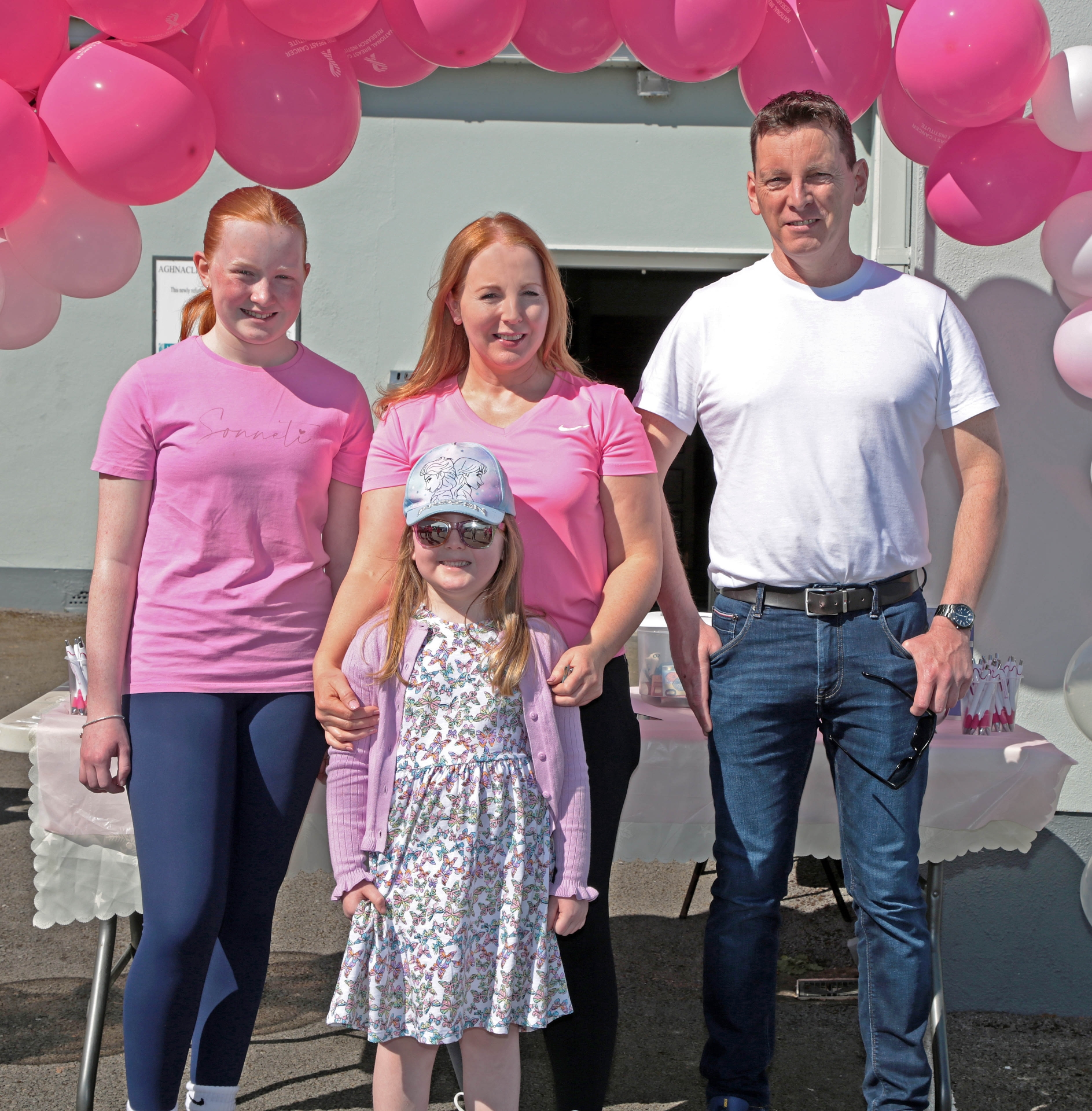 Caption: Veronica, Barry, Eva and Grace Conaty in sunny Colmcille last Sunday for the Colmcille Goes Pink walk