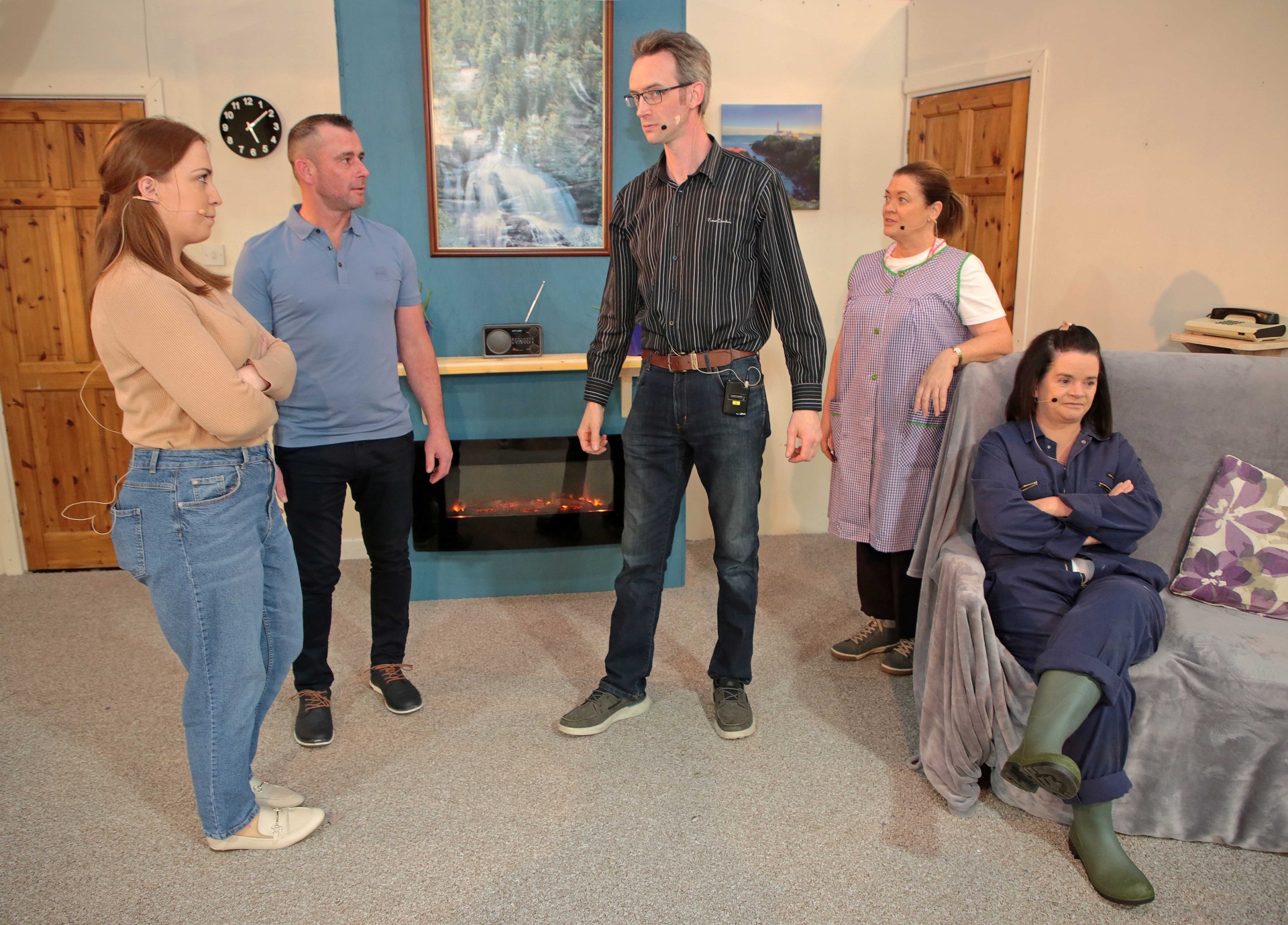 Caption: Aisling Murray, Brian Farrell, Adam Quinn, Edel McGuire and Ursula Hawes on stage during the Moydow Pillar Box Drama Group production of ‘Separate Beds'