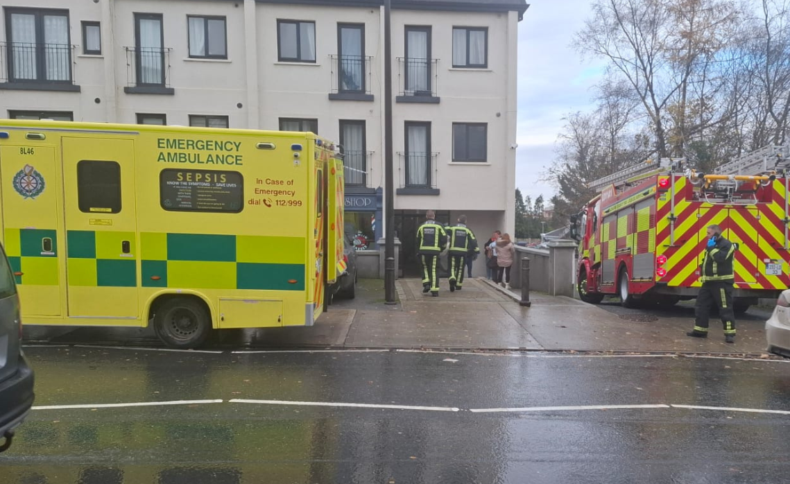 Members of the fire service make their way into the apartment block to assist paramedics and Gardaí already on site