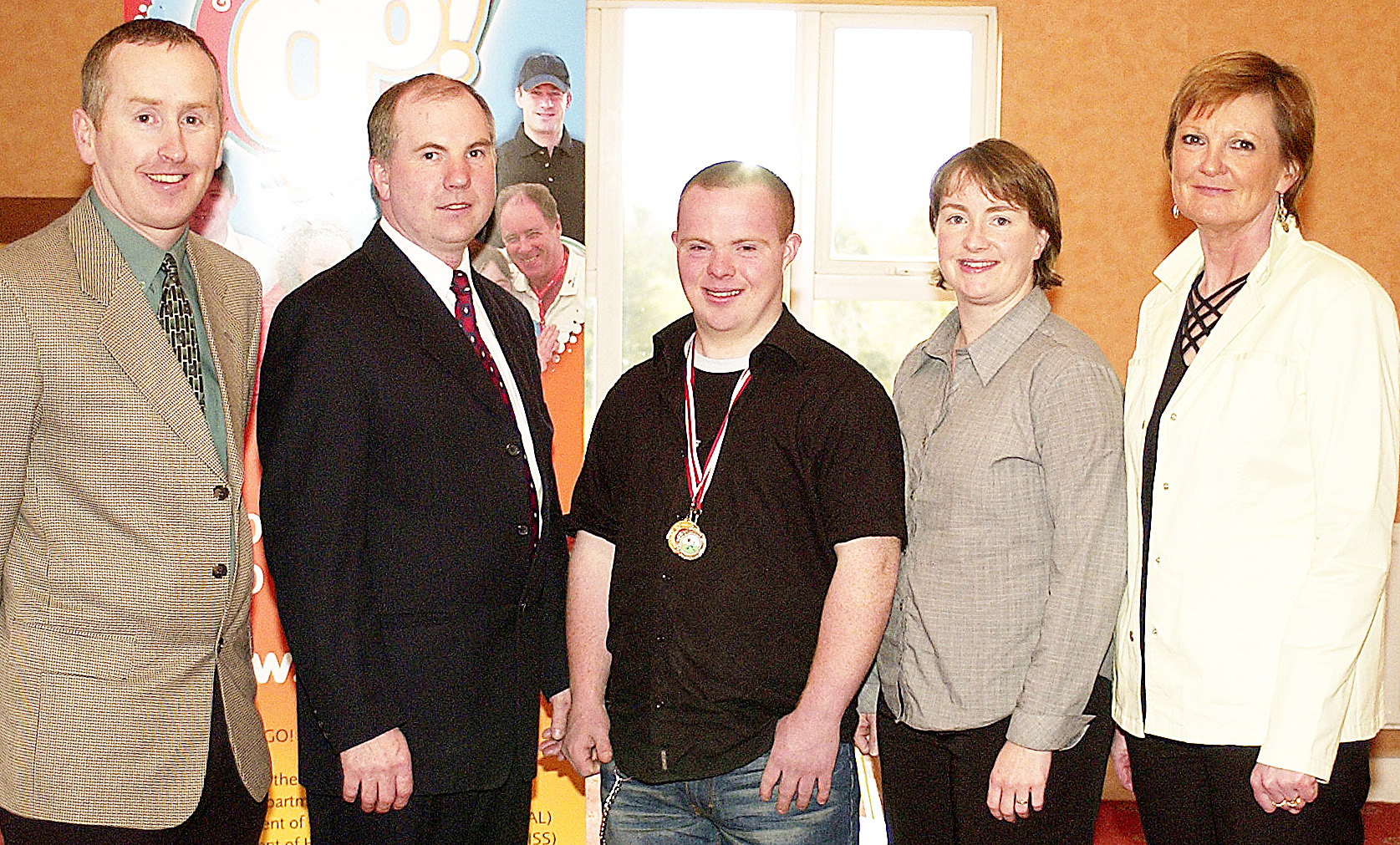Caption: Special Olympics Launch 2005 - Eamon Kenny, Liam Madden, chairman of the local Special Olympics committee; Longford athlete Sean Keenan; Myra Merrick, Regional Director of the Special Olympics and Bernice Daly PRO at the local launch of the National Get Up, Get Out, Go campaign. Picture: Joe McDonagh