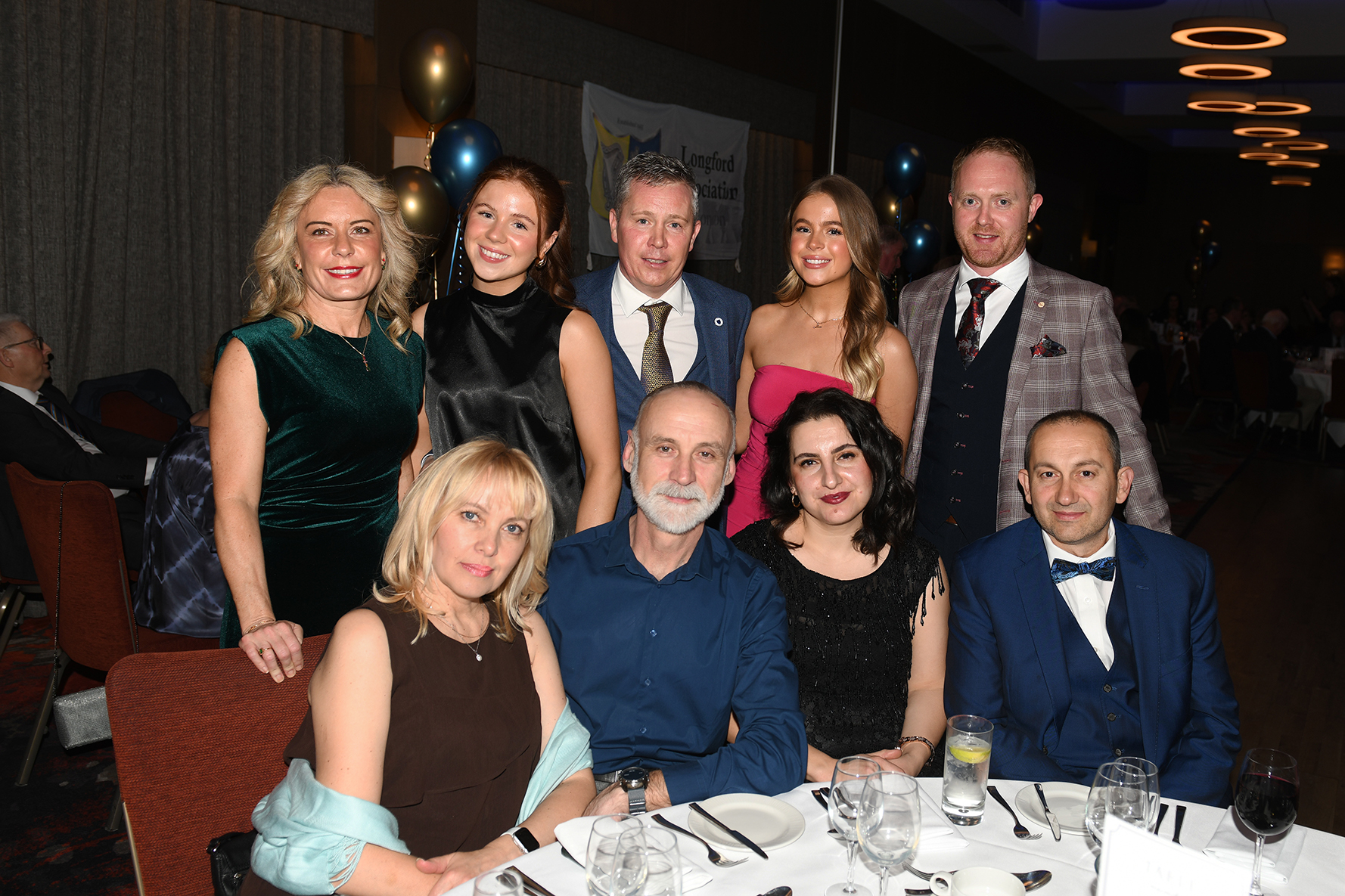 Caption: Ciaran Horohoe (Lanesboro) from Horohoe Construction is pictured standing centre with family and friends. Horohoe Construction were one of the main sponsors of the 68th annual Longford Association London dinner and dance in the Clayton Hotel Chiswick in West London on Saturday, February 3 Picture: Malcom McNally Photography
