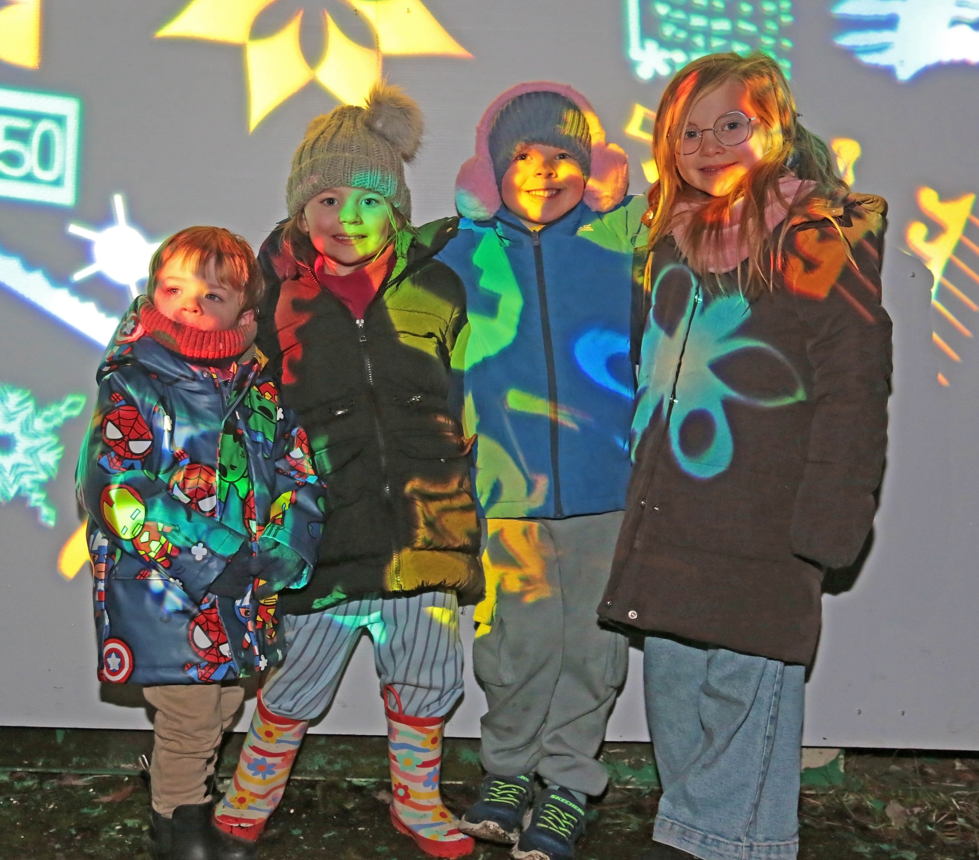 Caption: Ruben, Paige, Kayden and Amber Fox all caught up in the stunning Longford Lights Picture: Shelley Corcoran