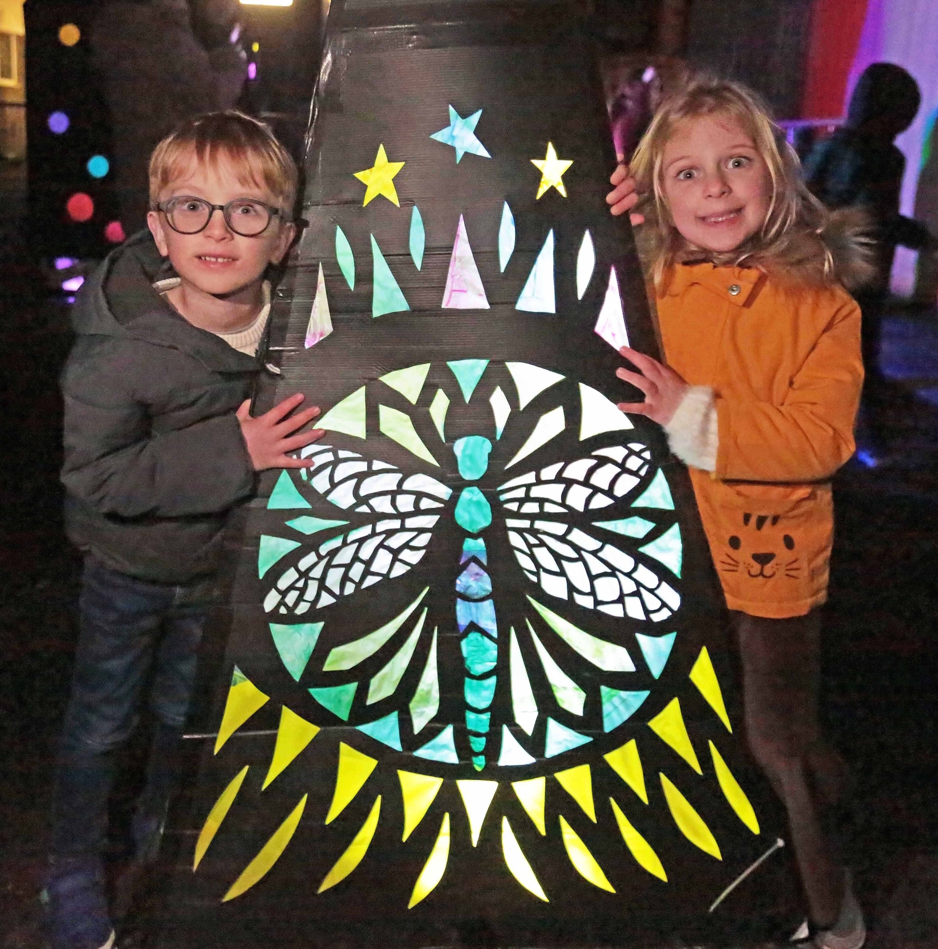 Caption: Admiring some of the delightful art works at Longford Lights were Charlie and Georgia McCabe Picture: Shelley Corcoran