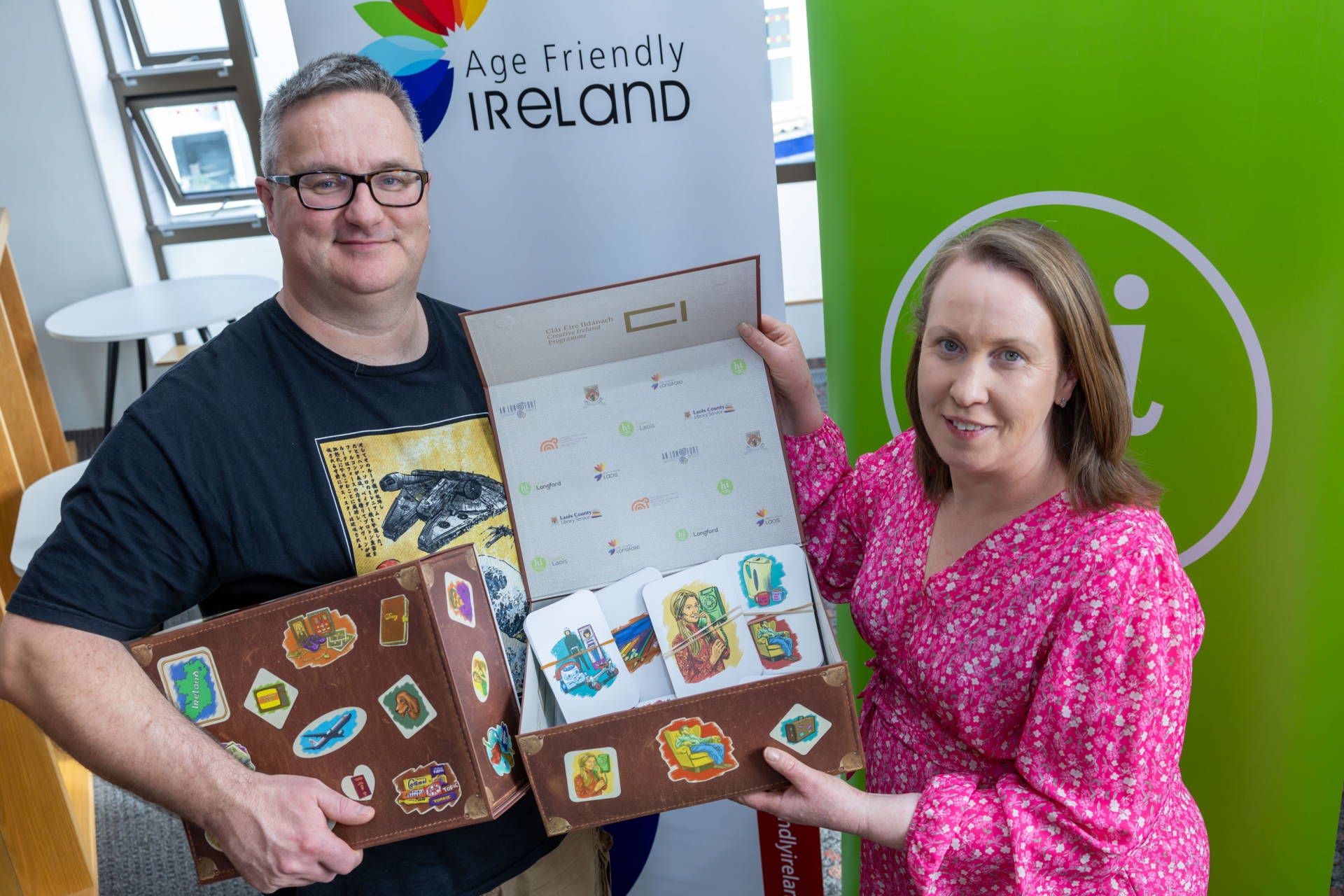 Oisin McCann (illustrator) and Edel Fallon (graphic designer) at Portlaoise Library