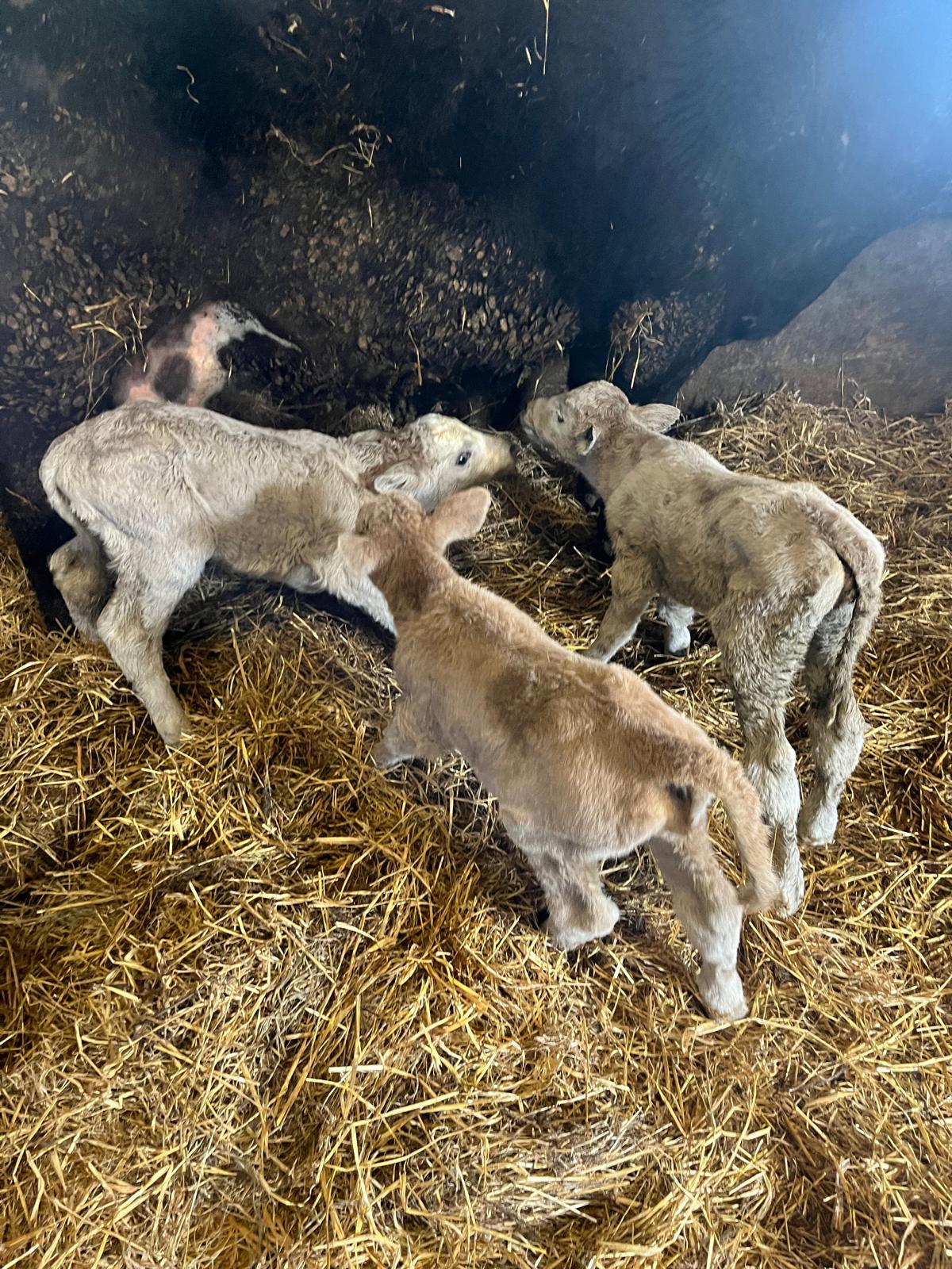 The week before the arrival of the triplets, Noel also welcomed two sets of twin calves.